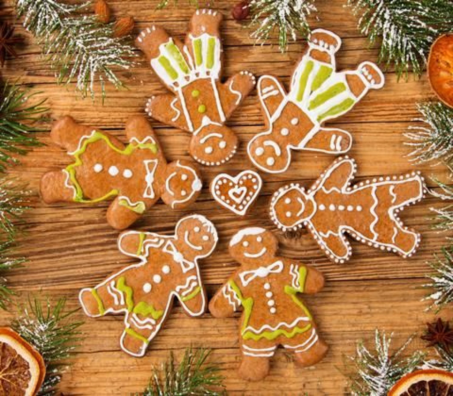 1. Imbieriniai sausainiai. Prasidėjus šventiniam laikotarpiu, imbieriniais sausainiais pripildamos parduotuvių lentynos. Tačiau juos greitai ir lengvai galite pasigaminti ir namie. Galite rasti įvairių tešlos rūšių, pateikiame vieną iš jų. 100 g rudojo cukraus išsukite su 100 g sviesto, įdėkite 4 šaukštus ištirpinto medaus ir įmuškite vieną kiaušinį. Galiausiai supilkite 400 g miltų, vieną arbatinį šaukštelį kepimo miltelių, du šaukštelius malto imbiero, dar šaukštelį cinamono ir gvazdikėlių, jei mėgstate. Tešlą gerai išmaišykite, susukite į plastikinę plėvelę ir 30 min. padėkite į šaldytuvą. Iškočiokite 0,5 cm storio blyną. Tada įvairiomis formelėmis išspauskite sausainius. 180 laipsnių karščio orkaitėje kepkite apie 10 minučių, svarbiausia, neperkepkite. Atvėsusius dekoruokite. Galite tam įsigyti specialių dažų arba pasigaminti glajų iš cukraus pudros, citrinos sulčių ir vandens.