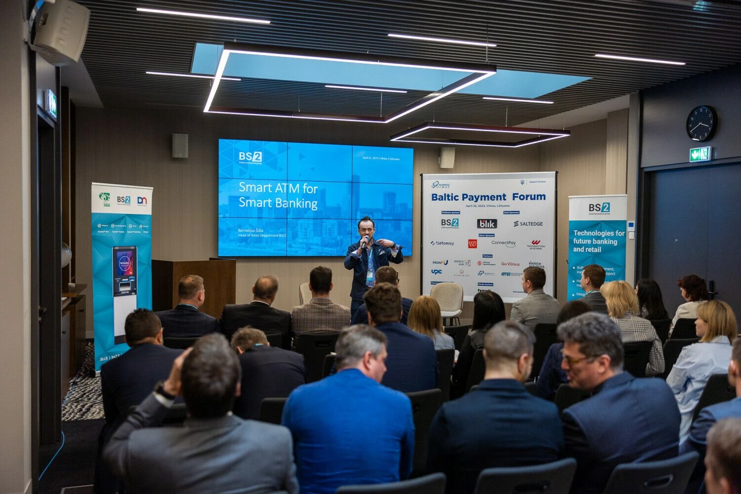 Renginys buvo kupinas įžvalgų ir įdomių diskusijų. BS/2 Pardavimų departamento direktorius Kornelijus Šišla įtraukė klausytojus įdomiu pranešimu „Išmanieji bankomatai išmaniajai bankininkystei“.