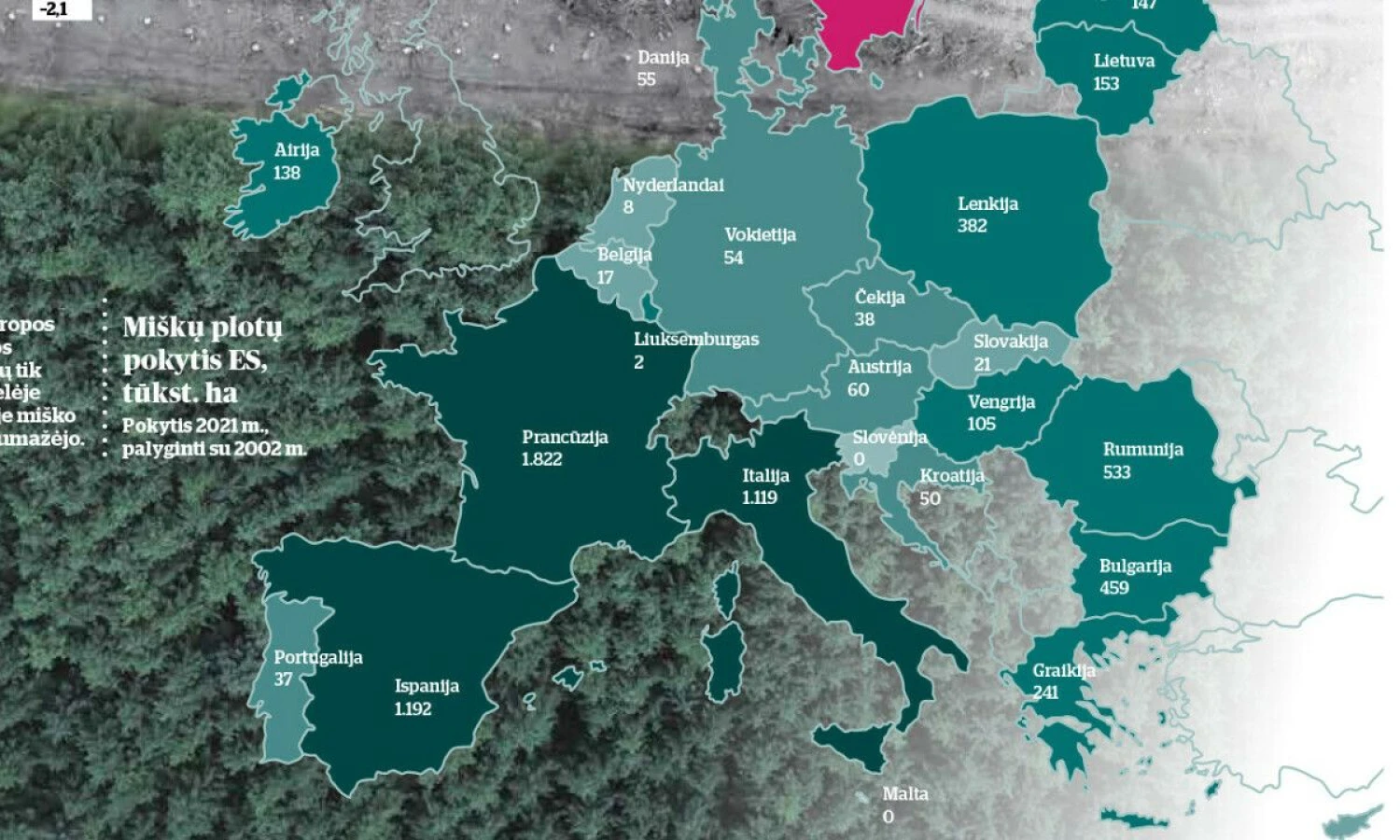 Per pastaruosius du dešimtmečius Brazilija buvo daugiausia miškų netekusi šalis – jų plotas sumažėjo daugiau kaip puse milijono kvadratinių kilometrų. Šį didelį kirtimą labiausiai lėmė žemės ūkio plėtra, skirta jautienos ir sojos gamybai, taip pat kasybos ir infrastruktūros plėtra, skaičiuoja „visualcapitalist.com“.