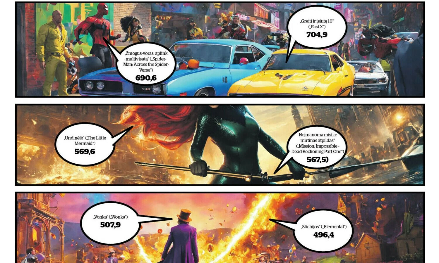 Infografika: populiariausi filmai pasaulyje ir Lietuvoje 2023 m.