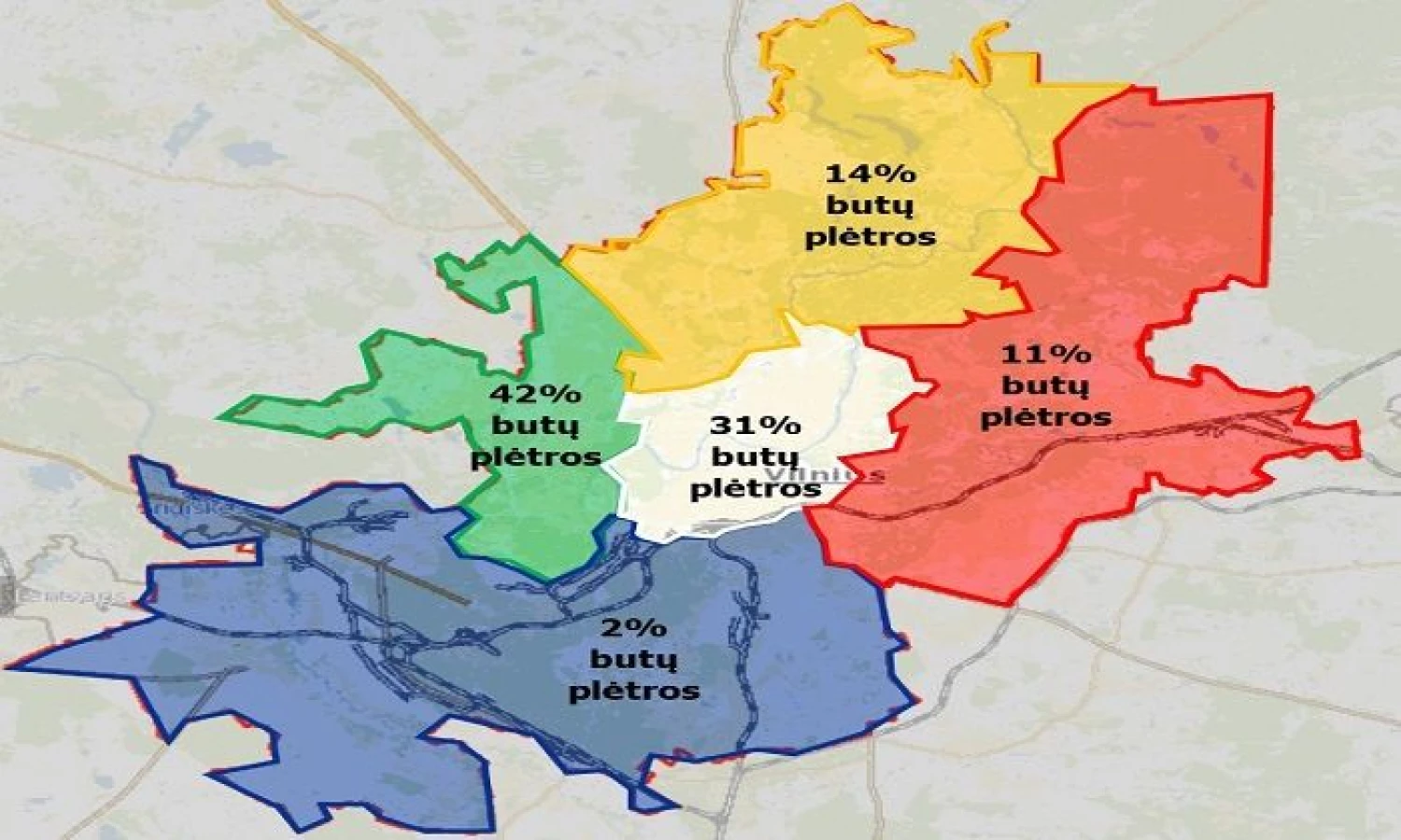 Netolygi miesto plėtra vakarinėje miesto dalyje didina susisiekimo ir socialinės infrastruktūros iššūkius, dėl kurių šiaurinė miesto dalis jau yra praradusi tą populiarumą, kurį turėjo anksčiau ir dėl kurio išblėso būsto vertės prieaugis. Klausimas, kiek dar „būsto apkrovos” gali atlaikyti vakarinė miesto dalis? Ir jei nebeatlaikys, kur bus naujos būsto plėtros kryptys Vilniuje? Mano vertinimu, atsakymas gana aiškiai matomas butų plėtros žemėlapyje.