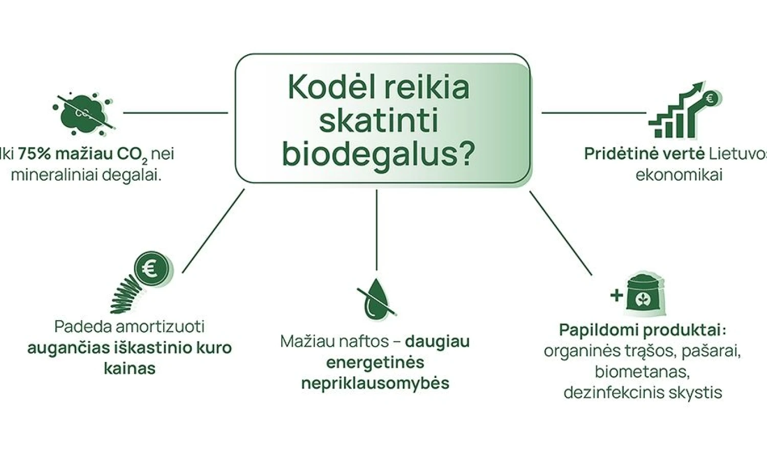Pašnekovas taip pat pažymėjo, kad remiantis Energetikos ministerijos prognozėmis, 2030 m. Lietuvoje automobiliai su vidaus degimo varikliais sudarys beveik 85 proc. viso šalies autoparko, tad norint mažinti naftos produktų vartojimą, biodegalai lieka vienintelė reali alternatyva.