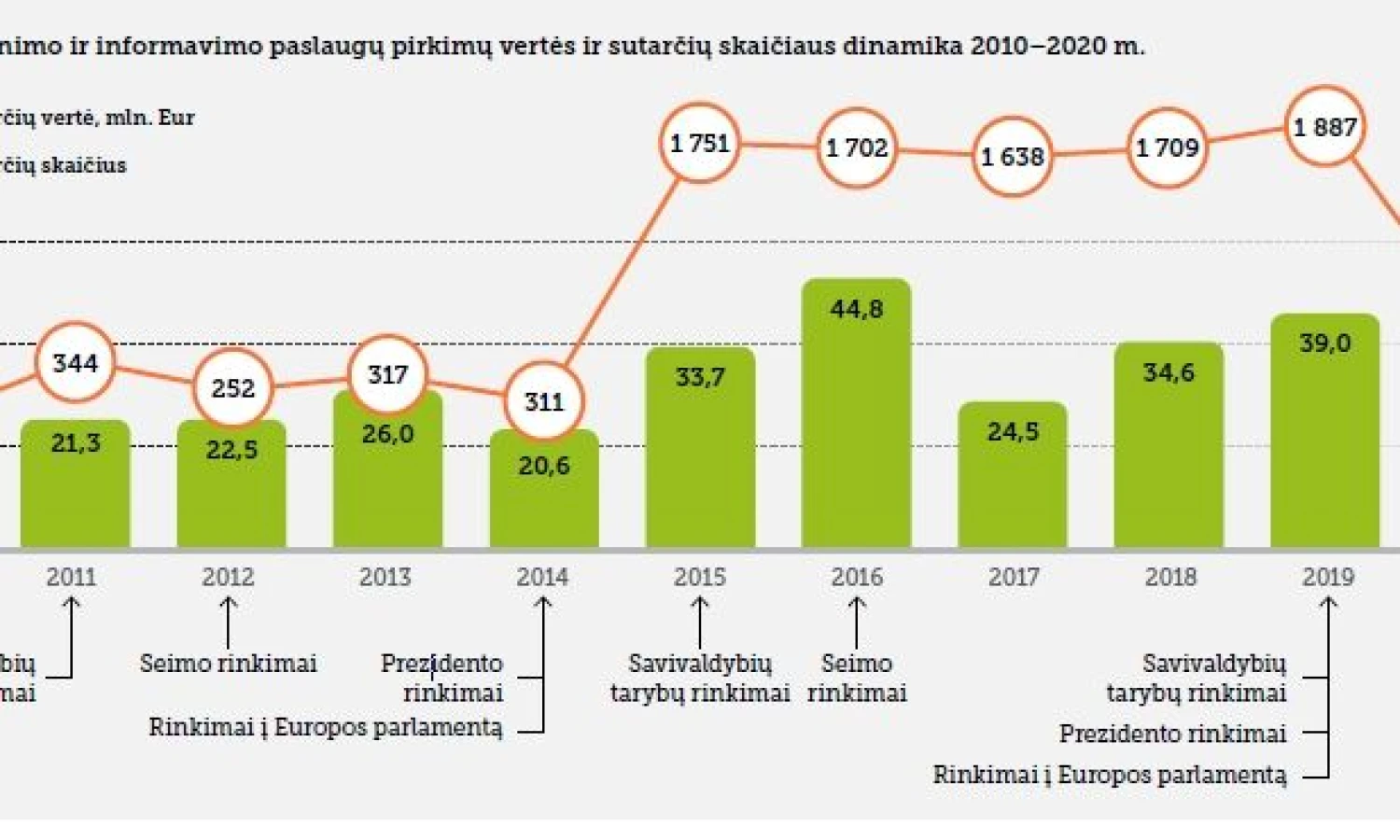 Anot J. Petkuvienės, visuomenei vis dar sunku suprasti, kokios tiksliai paslaugos buvo nupirktos, iš apžvalgos duomenų ryškėja, kad viešinimo pirkimų apimtys koreliuoja su politinių rinkimų ciklais.