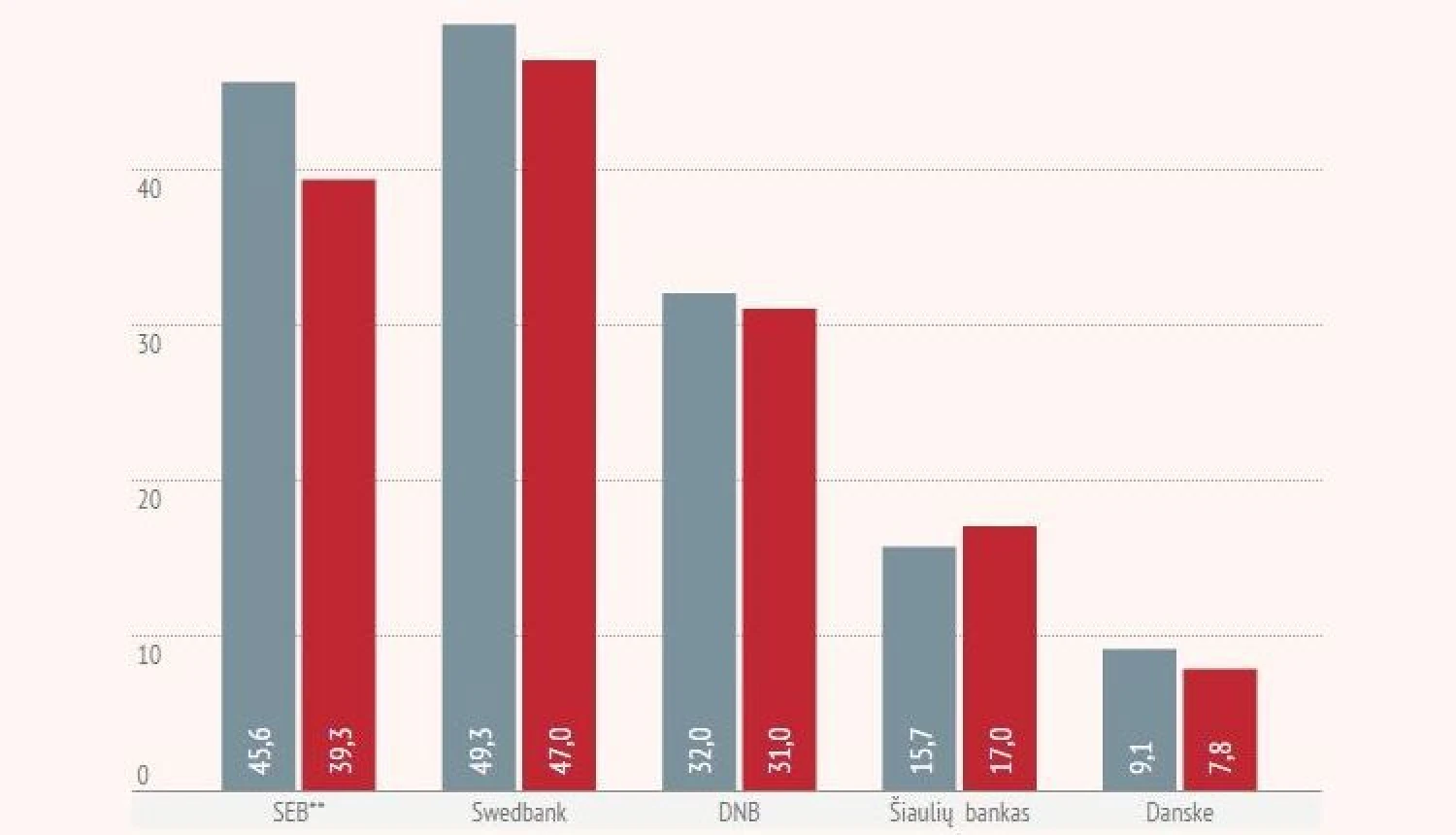Bankų sektoriaus pelningumui mažėjant, pelną padidino tik mažesnieji – šių metų pradžioje apie mažmeninės bankininkystės atsisakymą paskelbęs „Danske Bank“, „Nordea“ ir Šiaulių bankas.