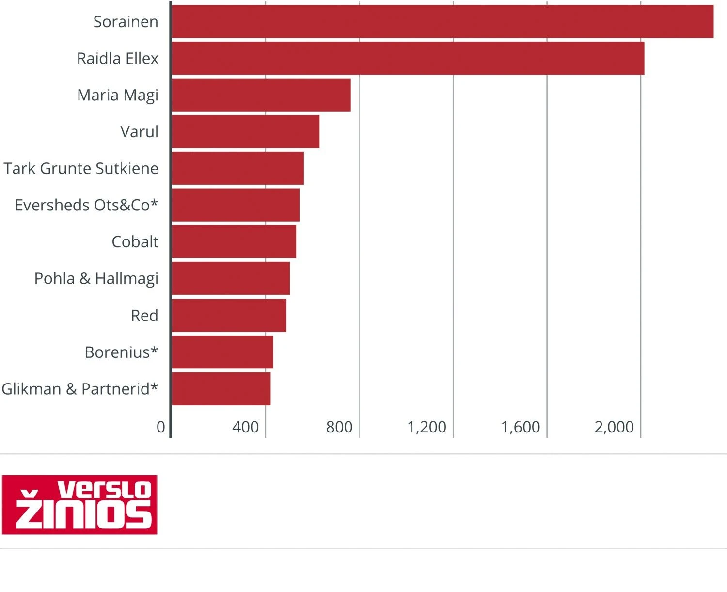 Daugiausiai uždirbančių Estijos advokatų kontorų sąraše nemažai pažįstamų vardų, mat dalis jame esančiųjų turi tinklą visose trijose Baltijos šalyse. Sąrašas sudarytas pagal 2014 m. finansinius rezultatus, nes 2015 m. finansiniai duomenys dar nėra paskelbti.