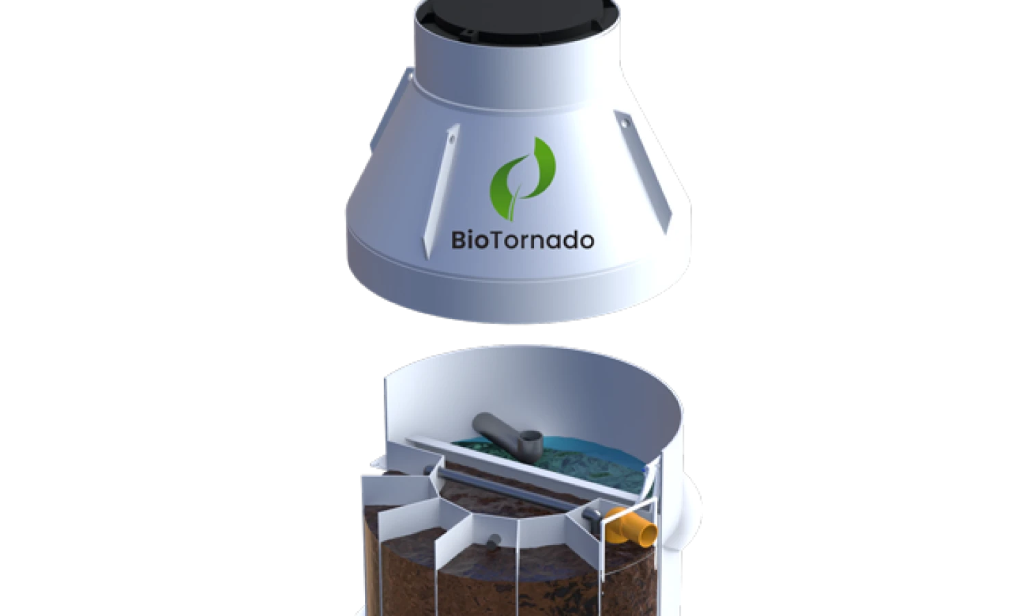 „BioTornado“ konstrukcija įleidžiama po žeme taip, kad netrukdytų prižiūrėti veją. Vos 65 cm skersmens dangtis bus beveik nepastebimas ir integruosis į gamtovaizdį.