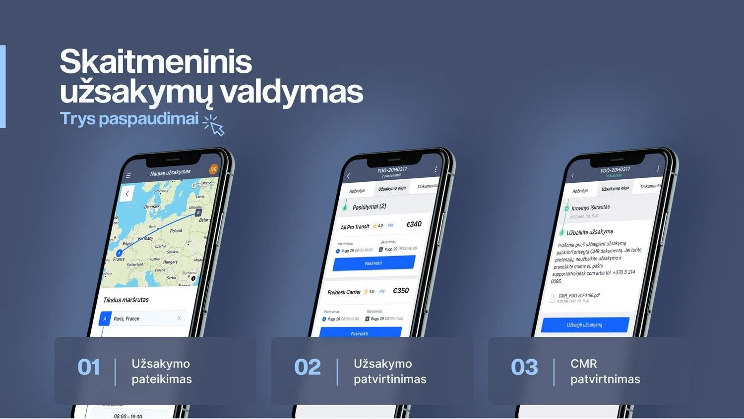 Daugiau nei 20 metų patirties rinkoje turintys „Freidesk“ komandos nariai nusprendė sukurti inovatyvų logistikos valdymo įrankį pastebėję, kiek daug laiko įvairią produkciją gaminančios įmonės ir vežėjai praranda dėl rankinio informacijos įvedimo, nuolatinės komunikacijos telefonu bei popierinių dokumentų administravimo.