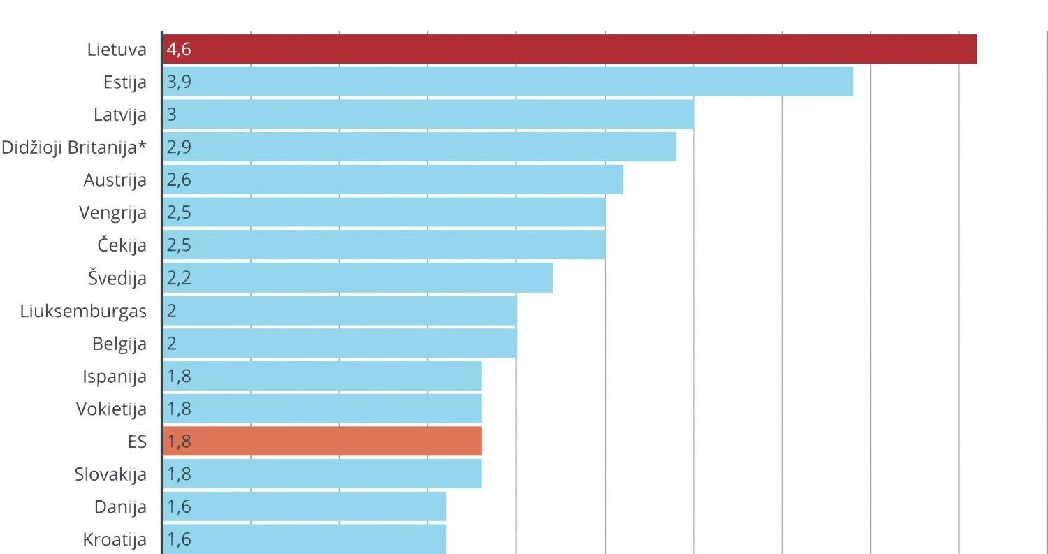 Rugsėjį Lietuvos metinė infliacija, pagal Eurostato skaičiavimus, liko tokia pati kaip ir rugpjūtį – 4,6%. Tačiau antroje vietoje esančios Estijos metinė infliacija sumažėjo nuo 4,2% iki 3,9%. Tad Lietuva savo artimiausią priešininkę lenkia net 0,8 proc. punkto.