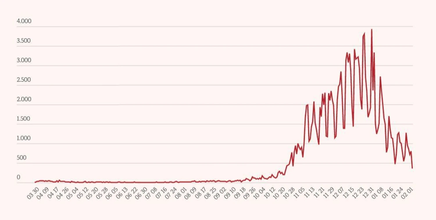 Iš viso Lietuvoje nuo pandemijos pradžios COVID-19 susirgo 182.893 žmonės, 129.269 asmenys pasveiko, 48.581 – tebeserga.