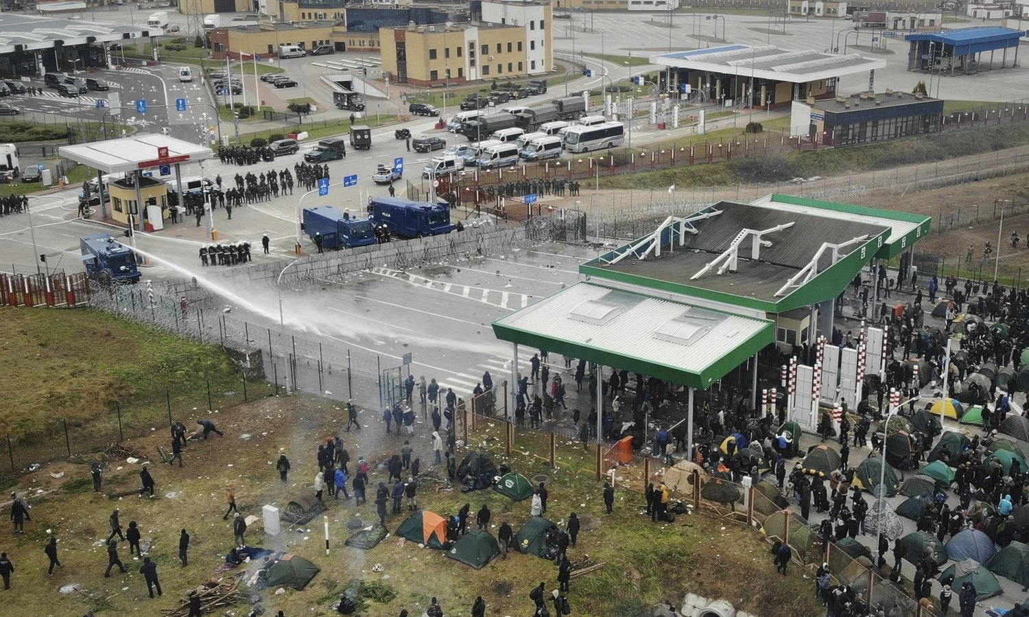 Pirmadienį Baltarusijos pareigūnų lydimi migrantai iš improvizuotos stovyklavietės miške buvo atvesdinti prie Kuznicos-Bruzgių pasienio kontrolės punkto. Lenkijos pareigūnų teigimu, čia buvo sutelkta ne mažiau kaip 3.500 migrantų. Migrantams buvo neleidžiama grįžti atgal į Baltarusijos gilumą, palapines jie pradėjo statytis tiesiog pasienio kontrolės punkte Baltarusijos pusėje.